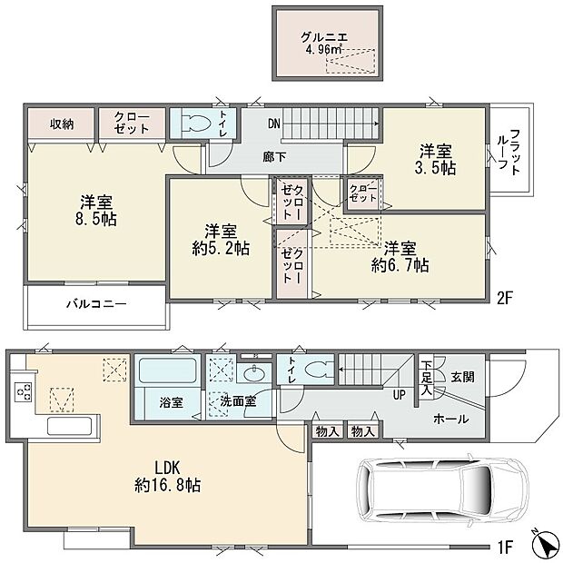 | 間取り | 4LDK 間取り内訳:リビングダイニングキッチン 16.8帖・洋室 8.5帖・洋室 6.7帖・洋室 5.2帖・洋室 3.5帖・その他 4.9帖 |