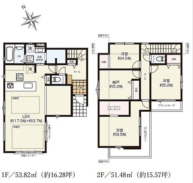 | 間取り | 3SLDK 間取り内訳:リビングダイニングキッチン 21.2帖(1階)・洋室 9.5帖(2階)・洋室 5.2帖(2階)・洋室 4.5帖(2階)・収納 5.2帖(2階) |