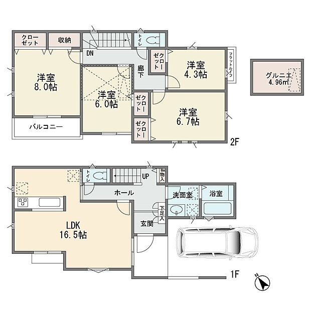 | 間取り | 4LDK 間取り内訳:リビングダイニングキッチン 16.5帖・洋室 8帖・洋室 6.7帖・洋室 6帖・洋室 4.3帖・その他 4.9帖 |