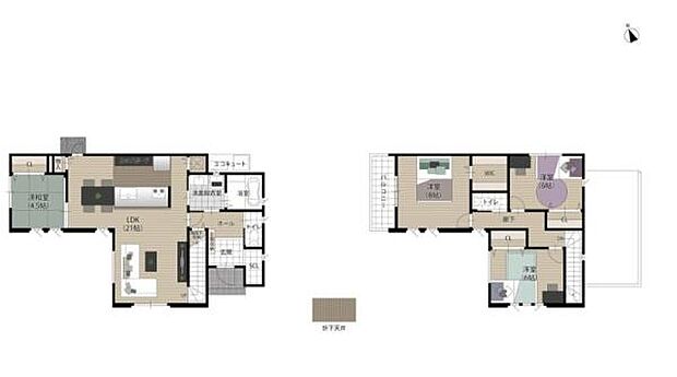 • 「建築条件付き土地」の「建物プラン例」は、土地購入者の設計プランの一例であり、プランの採用可否は任意です。