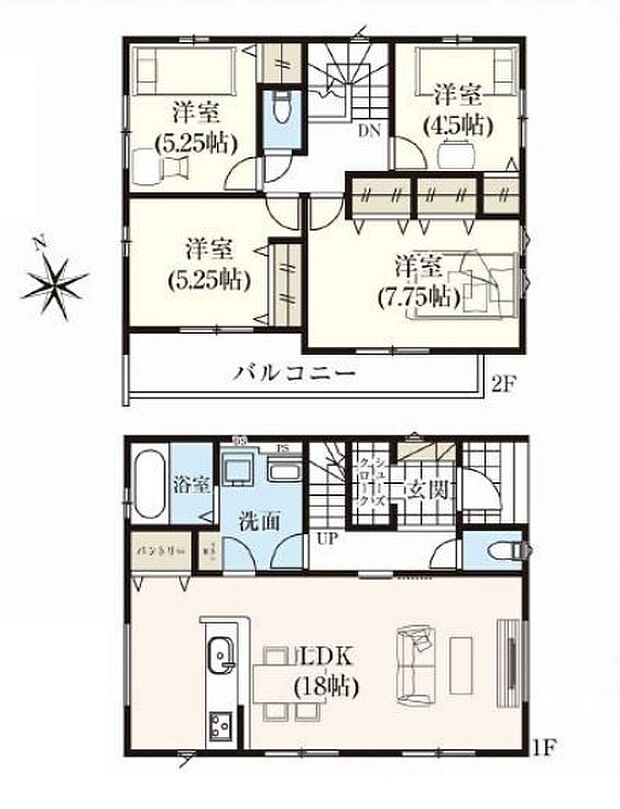| 間取り | 4LDK 間取り内訳:リビングダイニングキッチン 18帖・洋室 7.7帖・洋室 5.2帖・洋室 5.2帖・洋室 4.5帖 |
