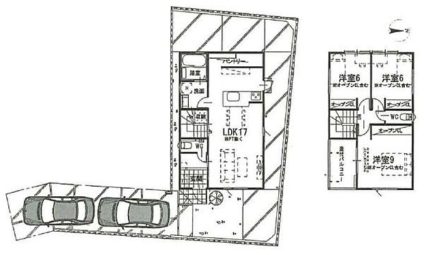 駐車2台可、全居室6帖以上南向きバルコニー