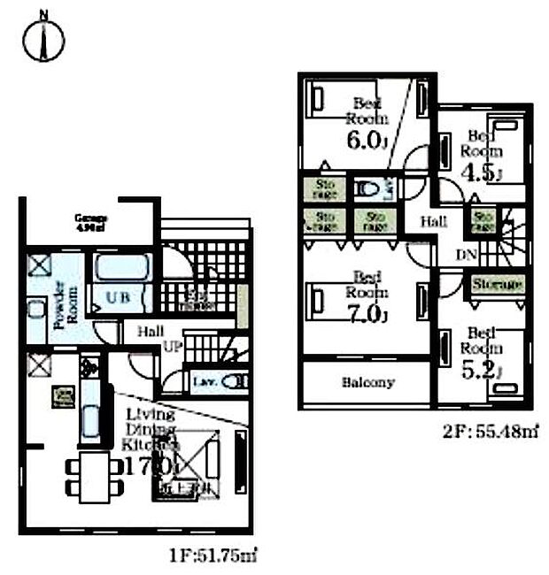 | 間取り | 4LDK 間取り内訳:リビングダイニングキッチン 17帖(1階)・洋室 4.5帖(2階)・洋室 5.2帖(2階)・洋室 6帖(2階)・洋室 7帖(2階) |