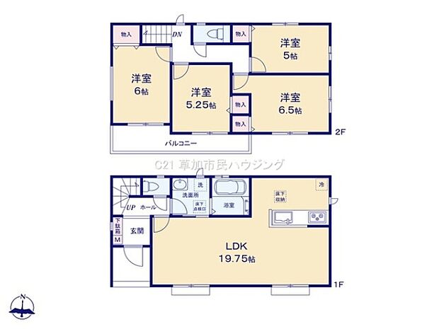 | 間取り | 4LDK 間取り内訳:リビングダイニングキッチン 19.7帖(1階) |