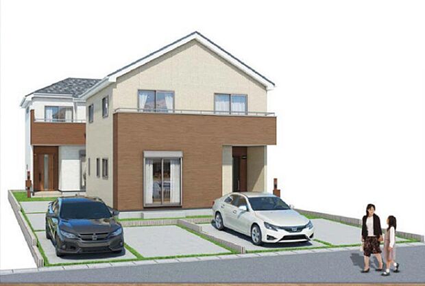 全2棟、南道路、駐車4台可(車種による)、LDK19帖超、対面キッチン、水廻り集中設計、ワイドバルコ
