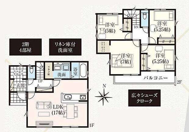 間取り内訳:リビングダイニングキッチン 17帖(1階)