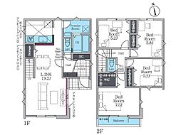 | 間取り | 4LDK 間取り内訳:リビングダイニングキッチン 17.5帖(1階)・和室 4.5畳(1階)・洋室 7.7帖(2階)・洋室 5.2帖(2階)x2 |