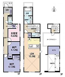 | 間取り | 4LDK 間取り内訳:リビングダイニングキッチン 18帖(1階)・洋室 6.2帖(2階)・洋室 5.5帖(2階)・洋室 5.3帖(2階)x2 |