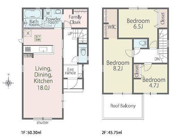 | 間取り | 3LDK 間取り内訳:リビングダイニングキッチン 18帖(1階)・洋室 4.7帖(2階)・洋室 6.5帖(2階)・洋室 8.2帖(2階) |