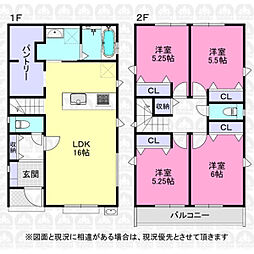 | 間取り | 3LDK 間取り内訳:リビングダイニングキッチン 16.6帖(1階)・洋室 7帖(2階)・洋室 5.5帖(2階)・洋室 5.2帖(2階) |