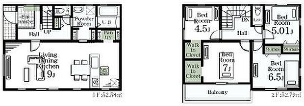 WIC2ヵ所にパントリー等収納豊富駐車スペース3台可能広々4帖のバルコニー