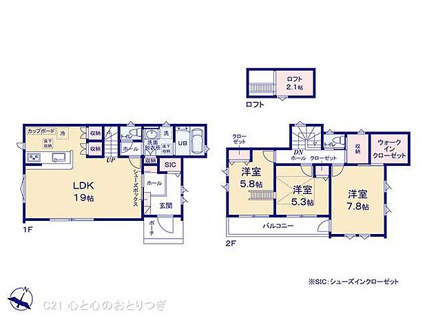 | 間取り | 3LDK 間取り内訳:リビングダイニングキッチン 19帖(1階) |