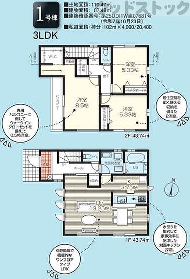 • 「建築条件付き土地」の「建物プラン例」は、土地購入者の設計プランの一例であり、プランの採用可否は任意です。