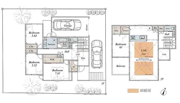 | 建物面積 | 148.42m2(ガレージ18.83m2含む) | ||