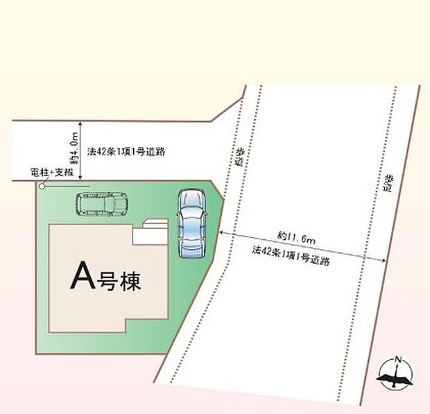 • 北西 (公道 幅員 4.00m 接面 -)