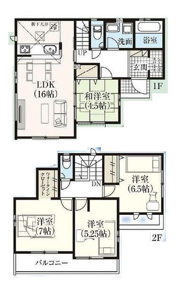 間取り内訳:リビングダイニングキッチン 16帖・和室 4.5畳・洋室 7帖・洋室 6.5帖・洋室 5.2帖