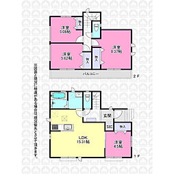 | 間取り | 4LDK 間取り内訳:リビングダイニングキッチン 15.5帖(1階)・洋室 6.2帖(1階)・洋室 7帖(2階)・洋室 6.5帖(2階)・洋室 5.5帖(2階) |