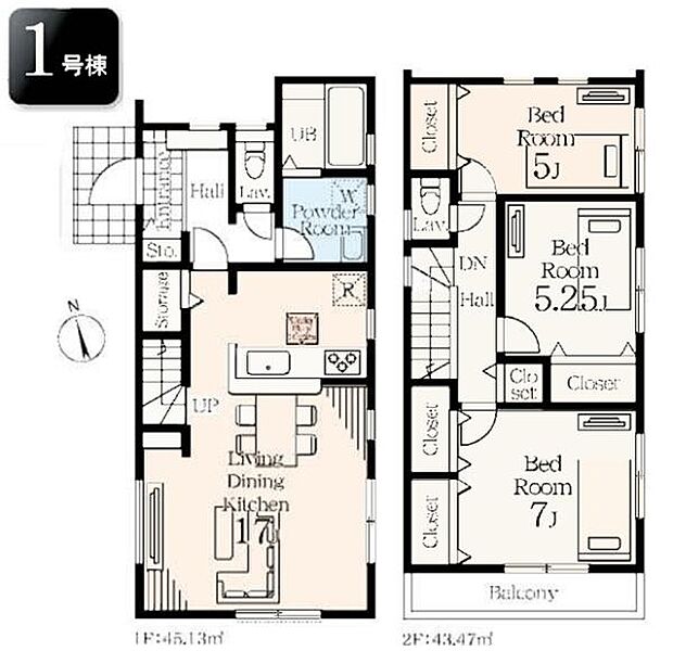| 間取り | 3LDK 間取り内訳:リビングダイニングキッチン 17帖(1階)・洋室 7帖(2階)・洋室 5.2帖(2階)・洋室 5帖(2階) |