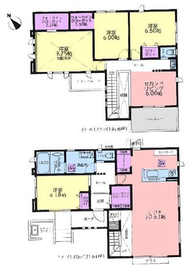 | 間取り | 4LDK 間取り内訳:リビングダイニングキッチン 20.6帖(1階)・洋室 6.1帖(1階)・洋室 9.2帖(2階)・洋室 6.5帖(2階)・洋室 6帖(2階) |