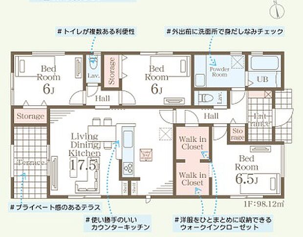| 間取り | 3LDK 間取り内訳:リビングダイニングキッチン 17.5帖(1階)・洋室 6.5帖(1階)・洋室 6帖(1階)・洋室 6帖(1階) |