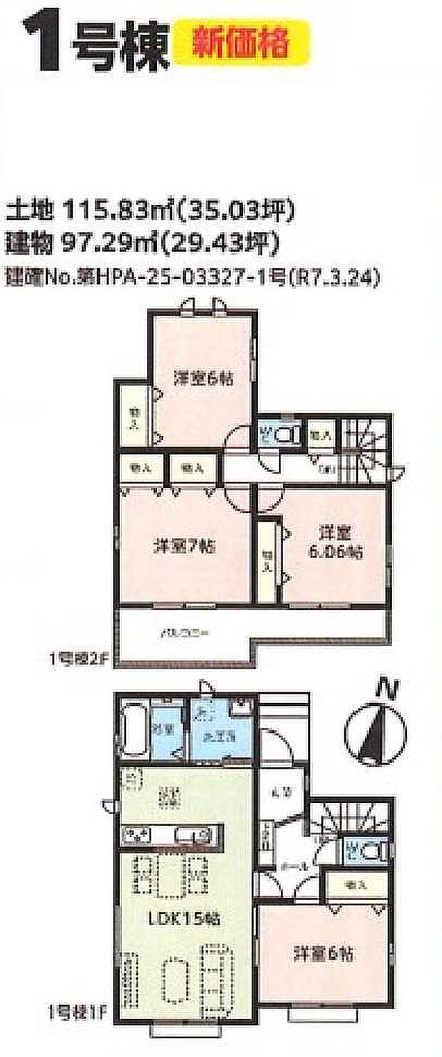 | 間取り | 4LDK 間取り内訳:リビングダイニングキッチン 15帖(1階)・洋室 6帖(1階)・洋室 6帖(2階)・洋室 7帖(2階)・洋室 6帖(2階) |