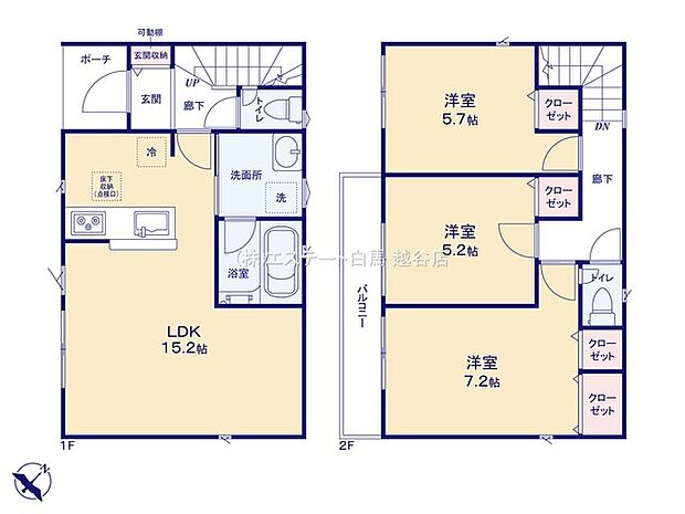 | 間取り | 3LDK 間取り内訳:リビングダイニングキッチン 15.2帖・洋室 7.2帖・洋室 5.7帖・洋室 5.2帖 |