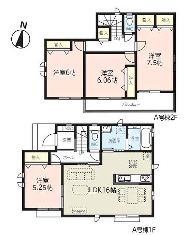 | 間取り | 4LDK 間取り内訳:リビングダイニングキッチン 16帖・洋室 7.5帖・洋室 6帖・洋室 6帖・洋室 5.2帖 |