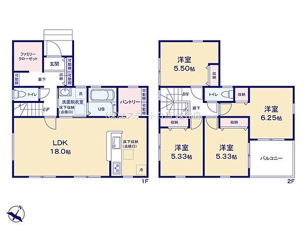 間取り内訳:リビングダイニングキッチン 18帖・洋室 6.2帖・洋室 5.5帖・洋室 5.3帖・洋室 5.3帖