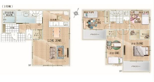 | 間取り | 4LDK 間取り内訳:リビングダイニングキッチン 20帖・洋室 8.6帖・洋室 6帖・洋室 5.6帖・洋室 5.2帖 |