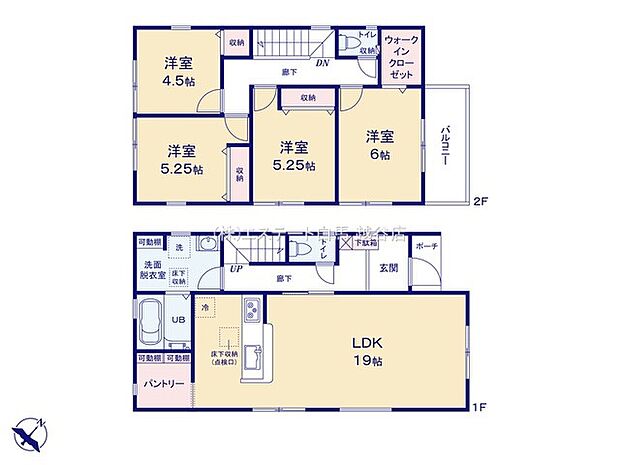 | 間取り | 4LDK 間取り内訳:リビングダイニングキッチン 19帖・洋室 6帖・洋室 5.2帖・洋室 5.2帖・洋室 4.5帖 |