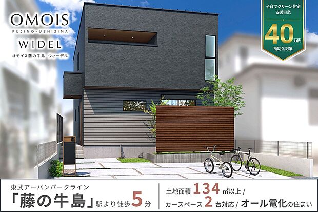 ■東武アーバンパークライン「藤の牛島」駅徒歩5分 ・「春日部」駅や「大宮」駅へダイレクトにアクセス可能 ・徒歩圏内に商業施設や公園、病院などの利便施設が点在 ■敷地面積134m2×20帖LDK ■シンプルな外観と開放的な広がりを創り出す工夫 ・連続した窓デザイン ・シェードラップ ・カースペース2台分 ■ゆとりあるインナープラン ・DECO MADO ・ワークスペース ・オープンキッチン ■快適で安心なオール電化仕様の住まい ・断水時の生活用水になる「エコキュート」 ・火を使わないので安全な「IHクッキングヒーター」 ・タッチレスで汚れにくい「キッチン用タッチレス水栓」