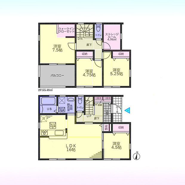 | 間取り | 4LDK 間取り内訳:リビングダイニングキッチン 16帖・洋室 7.5帖・洋室 5.2帖・洋室 4.7帖・洋室 4.5帖 |