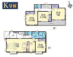 間取り内訳:リビングダイニングキッチン 19帖(1階)・洋室 7.5帖(2階)・洋室 7帖(2階)・洋室 6.8帖(2階)