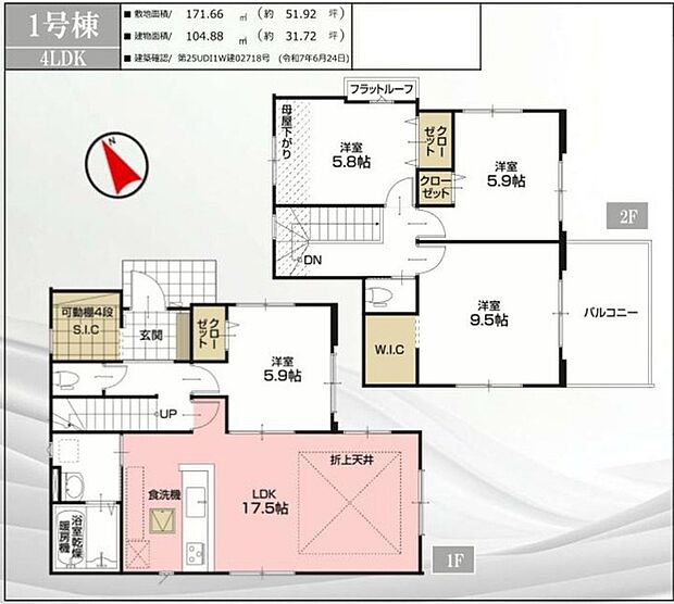 間取り内訳:リビングダイニングキッチン 17.5帖・洋室 9.5帖・洋室 5.9帖・洋室 5.9帖・洋室 5.8帖