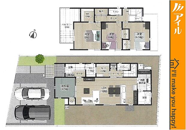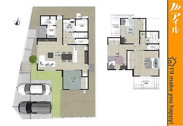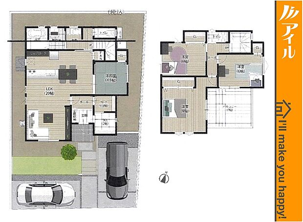 • 「建築条件付き土地」の「建物プラン例」は、土地購入者の設計プランの一例であり、プランの採用可否は任意です。