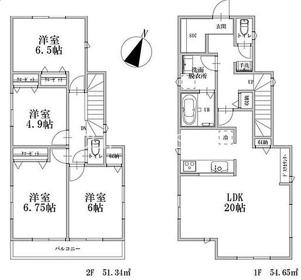| 間取り | 4LDK 間取り内訳:リビングダイニングキッチン 20帖(1階)・洋室 6.7帖(2階)・洋室 6.5帖(2階)・洋室 6帖(2階)・洋室 4.9帖(2階) |