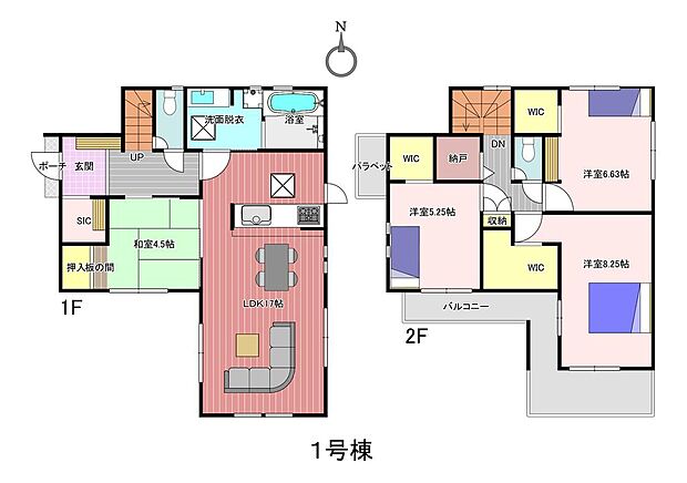 | 間取り | 4LDK 間取り内訳:リビングダイニングキッチン 17帖(1階)・和室 4.5畳(1階)・洋室 5.2帖(2階)・洋室 6帖(2階)・洋室 7.5帖(2階) |