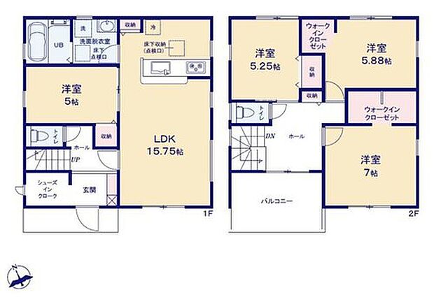 間取り 4LDK 建物階 木造在来軸組工法2階建(910モジュール)