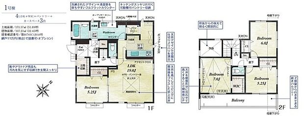 | 間取り | 4LDK 間取り内訳:リビングダイニングキッチン 19帖・洋室 7帖・洋室 5.2帖・洋室 6帖・洋室 5.2帖 |