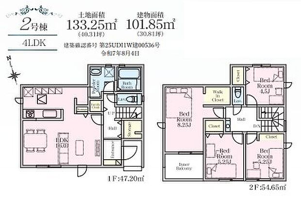 | 間取り | 4LDK 間取り内訳:洋室 8.2帖・洋室 5.2帖・洋室 5.2帖・洋室 4.5帖・リビングダイニングキッチン 16帖 |