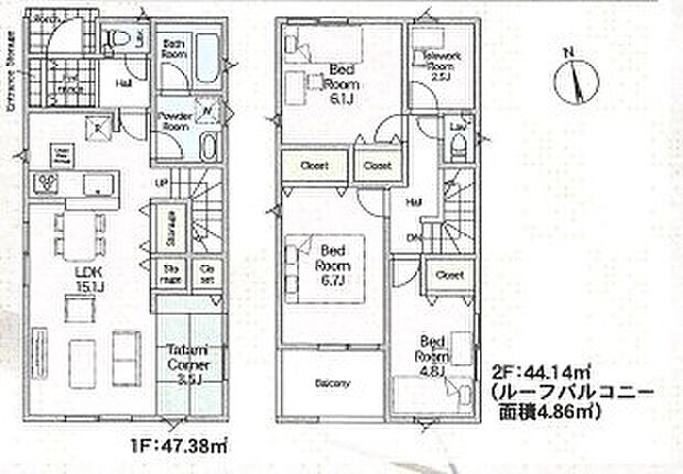 | 間取り | 3LDK(3.5帖タタミコーナー+2.5帖テレワークルーム) 間取り内訳:洋室 6.1帖・洋室 4.8帖・リビングダイニングキッチン 15.1帖・洋室 6.7帖 |