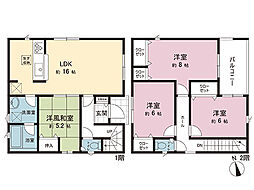 | 間取り | 4LDK 間取り内訳:リビングダイニングキッチン 16.5帖(1階)・和室 4畳(1階)・洋室 7.5帖(2階)・洋室 6.7帖(2階)・洋室 5.7帖(2階) |