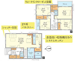 | 間取り | 3LDK+S+スキップDEN+土間収納+パントリー+ウォークインクロゼットコーナー ~ 5LDK+土間収納+ウォークインクロゼットコーナー | 建物階 | 木造2階建(2×4工法) |