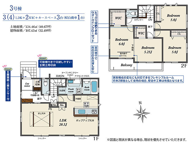 107.43m2(約32.49坪)~107.59m2(約32.54坪) |