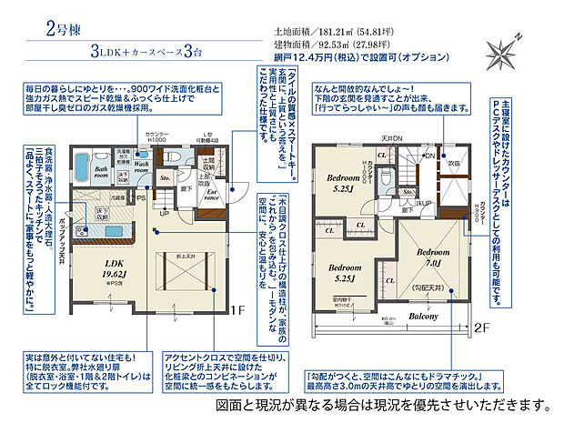 92.53m2(約27.99坪)~101.84m2(約30.80坪) |