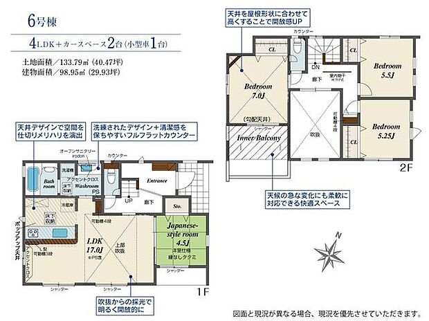 間取り内訳:リビングダイニングキッチン 17帖(1階)・和室 4.5畳(1階)・洋室 7帖(2階)・洋室 5.5帖(2階)・洋室 5.2帖(2階)