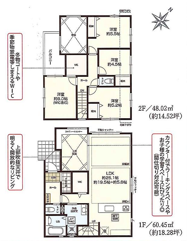 | 間取り | 4LDK 間取り内訳:洋室 8帖・リビングダイニングキッチン 25.1帖・洋室 5.5帖・洋室 5.2帖・洋室 4.5帖 |