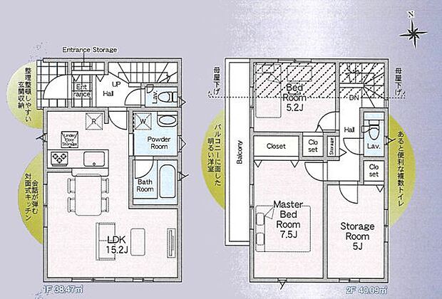 | 間取り | 2SLDK 間取り内訳:リビングダイニングキッチン 15.2帖(1階) |