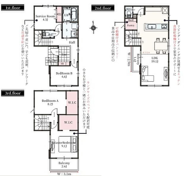 | 間取り | 3SLDK 間取り内訳:リビングダイニングキッチン 19.1帖・洋室 9.1帖・洋室 8.2帖・洋室 4.6帖・収納 4.5帖 |