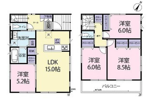 | 間取り | 4LDK 間取り内訳:リビングダイニングキッチン 15帖・洋室 8.5帖・洋室 6帖・洋室 6帖・洋室 5.2帖 |